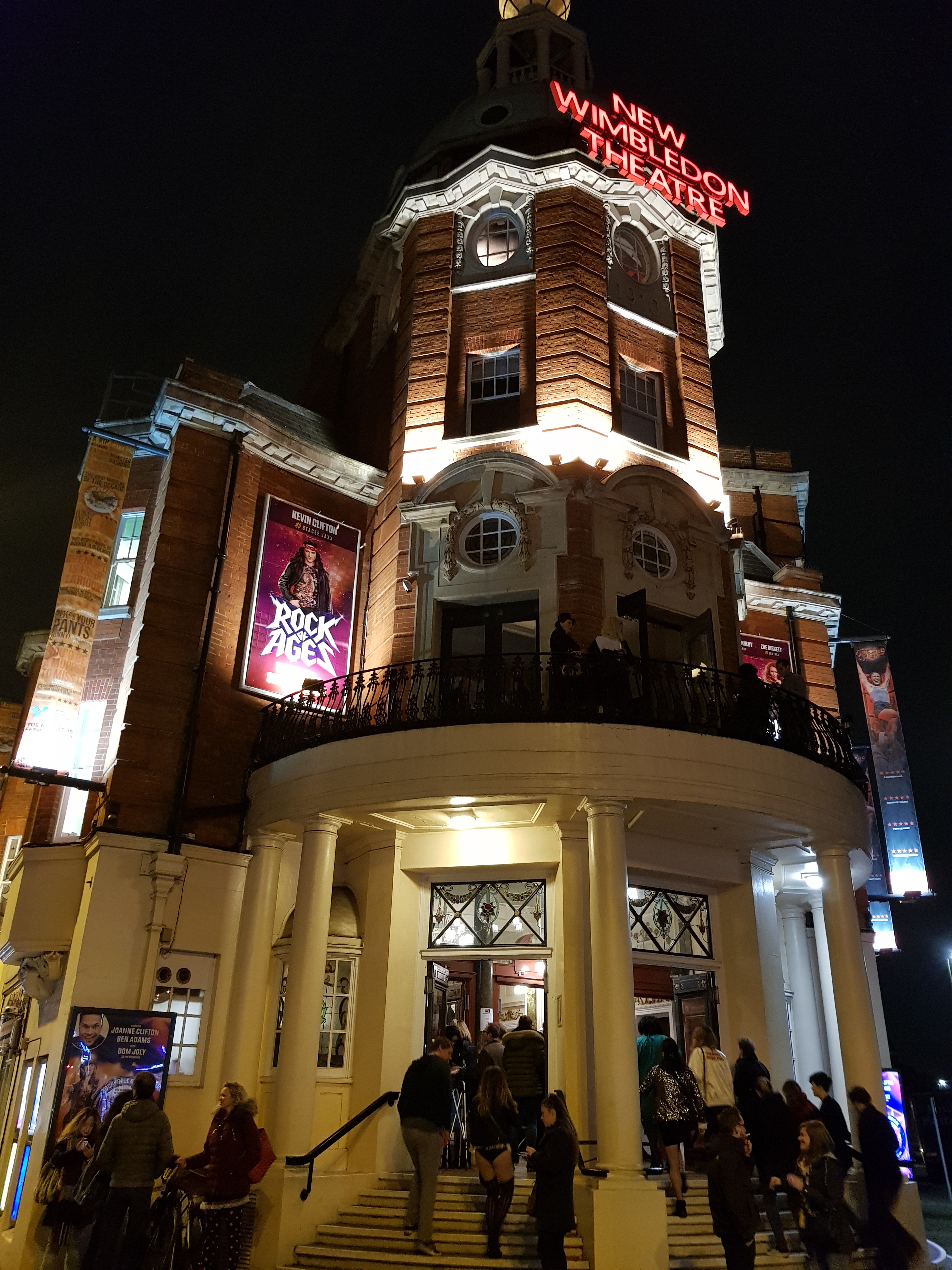 The 10-minute walk from the train station to the New Wimbledon Theatre leaves no doubt: The show’s cult following owns the high street this Saturday night! We are surrounded by black wigs, sequins, fishnets, stockings, big pearl necklaces, maid costumes, underskirts, party hats, leather jackets and shiny DocMartens. To an outsider they all seem to know each other, and we hear several regrets of this being the last night of the one-week tour stop in Wimbledon before the theatre company moves on.