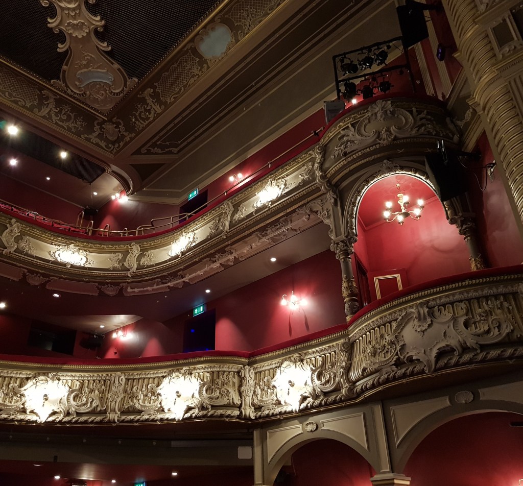 This is a piece of theatre about a less frequented district of a huge city and about the urban anonymity and inequality leading to loneliness. I am in Hammersmith’s Lyrics and after several parties and lunches on their excellent roof terrace above the high street I’m finally in the actual theatre. Having wanted to see this play since I saw it advertised in Brighton last year I happily embraced this tour stop closer to home. The inside of the Lyric Theatre is not what I expected: Having climbed up the stairs many times I knew both the restaurant and the foyer. The design, interior and direction signs are slick and modern, I step within this very cubic concrete building in a classic theatre with red seats, balconies, golden features and white plastering ornaments.