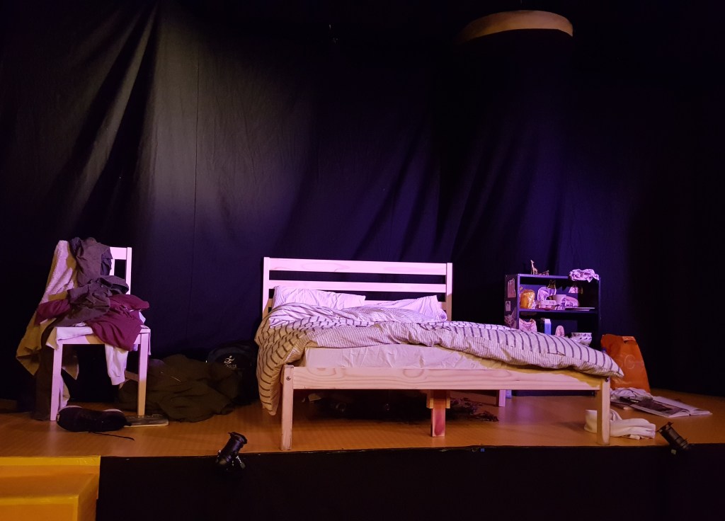With his new bed companions he shares a lot of what is going on in his head, and that is funny and odd and make this play weirdly believable: About him losing his job in the call centre for animal aid fundraising (for being too passionate), about his ambitions to go to Africa and see the wildlife there one day, and about his father who left the family only to start a new one nearby. There is a lot of loneliness and immaturity in Bobby’s narrative, but mainly it is a story of someone who could never keep up and had no one committing to him ever. Regrettably, the world is full of people in similar circumstances. Maybe a reminder of that is only bearable through a bizarre comedy?