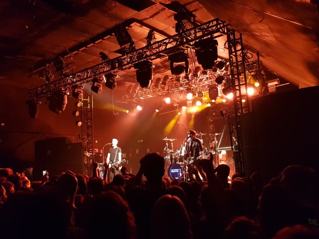 The audience shows off its band tattoos, tops of support bands I have not even thought of in over a decade and quotes of dialogue snippets, cut into hidden tracks and b-sides. I spot indie fringes I have not seen since 2003 and that was when the double album Geräusch came out – by then I knew other albums back to front without having owned them but Geräusch converted me while their fandom exploded everywhere around me. I did not have the money for more CDs and had to wait until Christmas and bridged the time until then by recording their concerts on VHS.