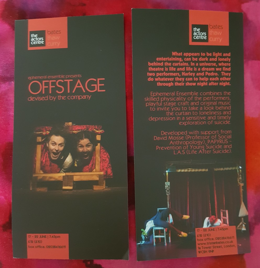 That Offstage is dedicated to suicide prevention while kicking off the Loneliness Awareness Week gives hope because this is what Harley achieves for his friend – living with the consequences of surviving a suicide attempt and continuing after having prevented one is a story we do not hear in the 45 minute play. Will we hear how this influences friendship, clearly as important as the relieving (still-not-very-happy) end, in a sequel? I happily return to learn about that next part of Pedro and Harley’s journey to the Tristan Bates Theatre, embedded in The Actors Centre in Covent Garden. This could have been a more important part.