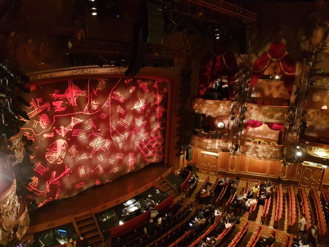 This evening we are in Theatreland London and its Lyceum Theatre where The Lion King opened twenty years ago could not be more different – instead of entering a modern multimedia temple you can only reach by (free) ferry shuttle over the river Elbe, we have true West End glamour: A façade with Corinthian pillars, inside gold painted stucco, ceiling frescos and red seats – a venue for an instant classic.