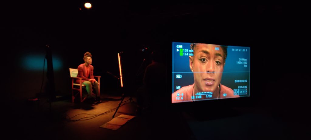Talking Gods starts with Hestia, the nowadays lesser-known deity of home and hearth, is telling us about her modern life, cohabiting with her activist sister Demeter and her teenage niece Cora. Her sister is much less domestic than Hestia, swears like a trooper, smokes weed and cares more about Aldi, Extinction Rebellion and genocide in a chocolate wrapper than the first term suggested by Google when typing in Zeus. The sisters do not see themselves represented in the human legal system but know the ins and outs of living in Transport for London zone 4, and sometimes it comes handy being acquainted with demons (Famine might pop in between jobs in Paris and Milan – ouch!). For most of the filming they sit on chairs, lights and music reflecting their reigns of responsibilities – a set up which could be anything but engaging but is so cleverly crafted and enjoyable. Cora is as open as them but glued to her phone at the same time, complaining that she was shown video footage of KFC abattoirs instead of Pixar films, and constantly enhanced her being recorded with vocoders, filters and further video edits while chasing Apollo on Instagram. When pressured to send nudes though she instead switches to emo boy Hades and runs away from home to join his canine shelter Underworld For Underdogs in Eastbourne. The next interview scenes show that a missing family member is no laughing matter but incredibly painful – and the police responses (“family matter – resolve it yourself”) reflecting recent news reports scarily exact. It is only now that I get that Cora is Persephone, and that all three characters are played by one single person; Nicolle Smartt is sensational as a living monotheistic metaphor.
