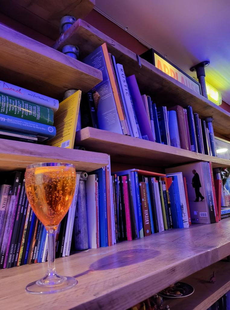 After a long, busy and grey January, comedy is what’s needed, and the Pleasance Theatre has not let me down so far when in need of mid-week laughs. Gladly, the trend to start one-act plays at 7pm continues – London’s theatre-affine commuters living outside the Underground network, desired more of this long before Covid. The price for this is the random food court scent during the performance; the Pleasance collaborates with a local pizza delivery which visitors are welcome to start on out of the box once taken their seats. The couple next to me brought a bag of fish ‘n chips from the chippy between here and Caledonian Underground Station, others well-prepared and probably still in the spirit of New Year’s resolutions, unpack salads and reusable cutlery. I for my part was happy with the first pre-show Aperol Spritz of the year, while inspecting the lobby’s library upstairs (sourcing Bertold Brecht, George Orwell, Alfred Hitchcock and Judi Dench).