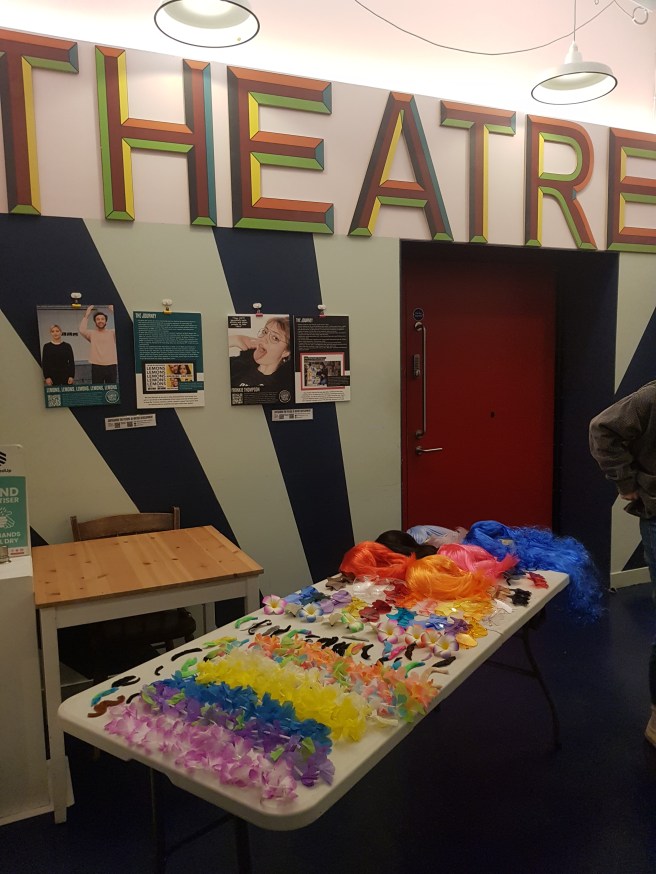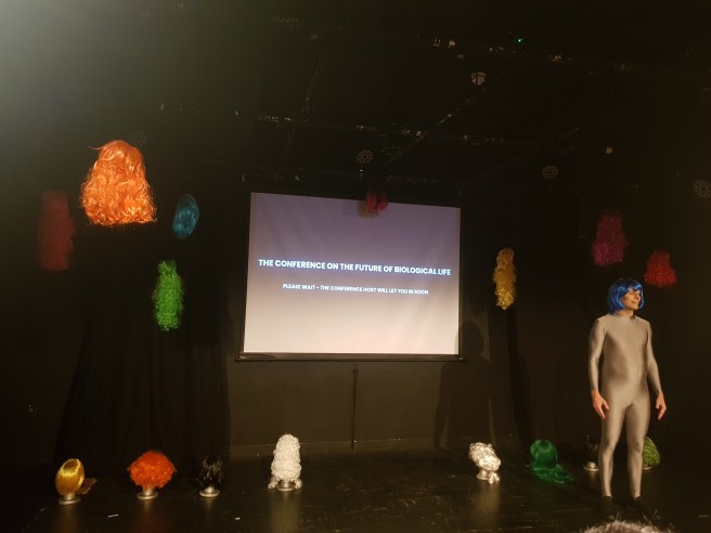 While wifi is provided, phones are better charged. And actually, you might want to go again, and not miss the upcoming performances at the Etcetera Theatre (a fine pub theatre on Camden High Street): What will be the ideas and outcomes there? “Abolish patriarchy” had a lot of support tonight when proposed as a condition to bring back life on earth. We achieve a 1:3 pro-life ratio which seems optimistic (just to make it clear, this is not an abortion debate). Not to be forgotten to be mentioned: The propped wigs in use as glowing, technicolour jellyfish will without doubt inspire many upcoming Under The Sea-themed party decorations, and Halloween is not that far away. And the Camden People’s Theatre is as welcoming as always, with generous cocktail deals available and lots of shows coming up. What a party!