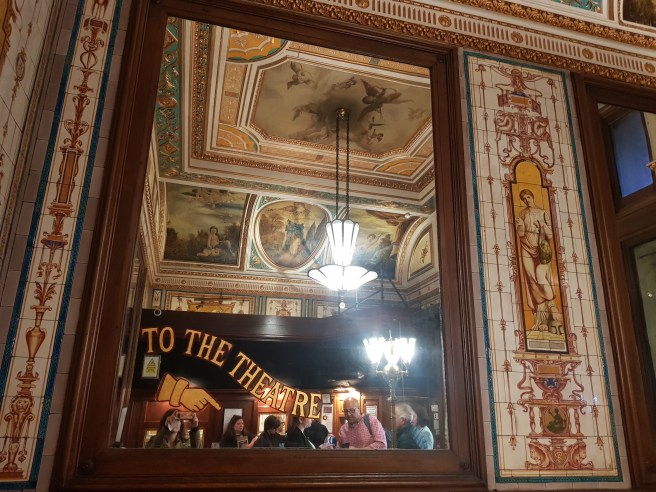 A first visit to the Criterion Theatre, nestled below the centre of Piccadilly Circus and its glaring world-famous lights and silhouettes, is like entering a hidden Italian music hall palazzo in the West End: Painted tiles, vast mirrors, detailed glass art and red seats promise an unforgettable visit. First opened in 1874, this classic but nevertheless unique London theatre has a lot of stories to tell for which alone it is worth to pick up the program of any performance one will enjoy here and even worth doing some reading up beyond; “a perfect bijou theatre in its own right” claims the always helpful book London’s Great Theatres.