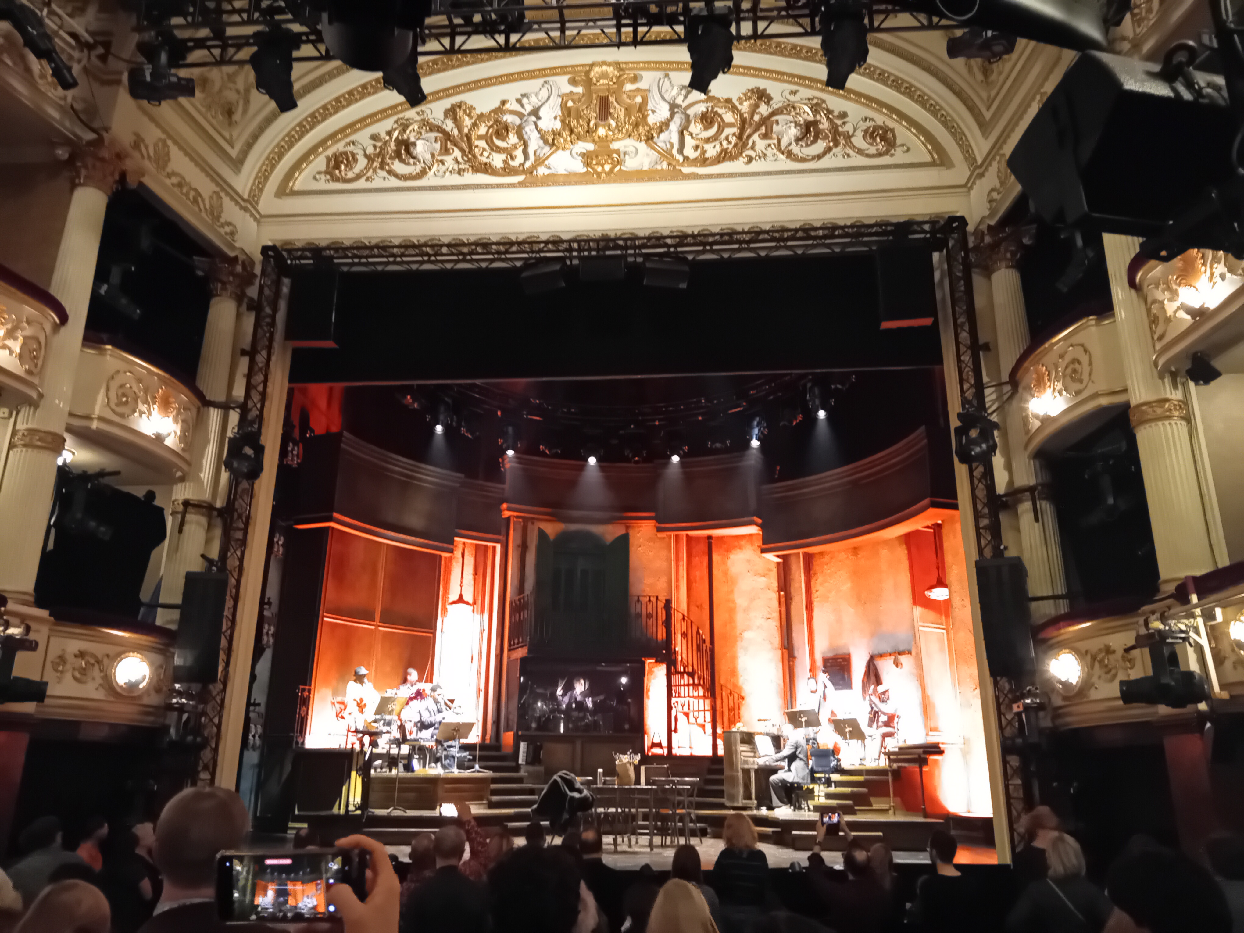 Clearly inspired by melodies and music venues like the Buena Vista Social Club, the orchestra stays on stage (I have a shameless audience crush on the trombone) and occasionally steals the show from the singers and their parts. Another highlight of the show is the stage setting, only topped by the powerful use of lightning which will lighten up the joys of weather-beaten colonial villas in the Caribbean and steam punks alike. Hadestown has some lengths, some missed opportunities (give the Three Fates more parts and don’t let them go on stage without playing that accordion so beautifully) and many five out of five star sceneries – making this a musical night out, many people will agree on. There is something very Broadway about this production but I might say this because my thoughts steer towards memories of seeing Titanic and Hamilton rather than European West End shows tonight. I am glad I have seen it: Last night, I woke up with Orpheus’ leitmotif in my ear.
