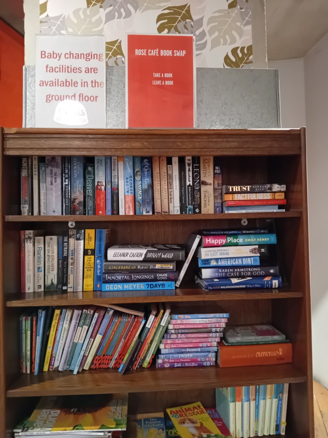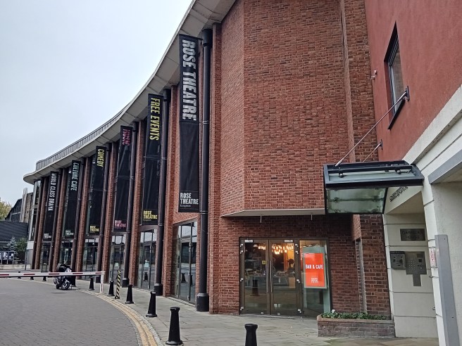 Neighbourhood children have provided us with the picture book from 2022, and its a great, very timely read as a Halloween build-up; spooky but not scary, with wonderful rhymes and engaging illustrations. Having just read it once again on the train, we arrive at the Rose Theatre for a Friday 1pm performance after a packed lunch on the nearby riverside, eager to see what the show is all about. In the busy theatre foyer I spot regretfully too late that the venue’s cafe claims to serve Kingston’s best coffee (I pledge to try it another time), and almost even more excitingly a book swap shelf. Theatres of the world, we need more of these please!