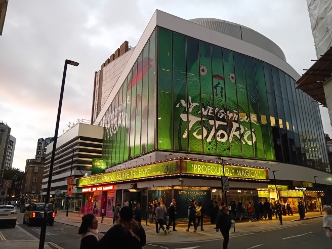 Memories of Japanese summers begin with the chirping sound of the cicada for me – their high-frequented mating call filled every park in Tokyo and Kyoto during a trip of a lifetime. And it is indeed the cicadas’ song which take me back, here at the West End‘s Gillian Lynne Theatre, acoustically illustrating the wonders of nature from their hideouts. Challenging my own estimation during my first visit here that the theatre appears to have been built cautiously to not provide seats with a bad view, we have opted for the cheapest seats available. And we are very happy with them and the value.